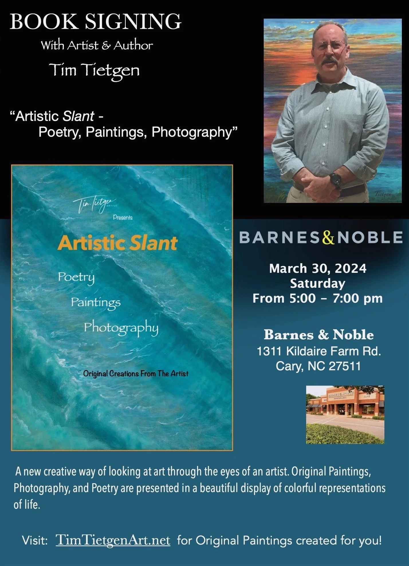 After many years of dedicated work, TTA is happy to introduce a unique collection of artistic accomplishments. Tim’s original paintings, photography, and poetry have been produced in a specially designed (8.5 x 11) soft cover book, featuring approximately 54 paintings with 22 new poems from the slanted perspective of the creative heart. Along with many research photographs, not previously published, there are some interesting image adventures that are all part of the journey.